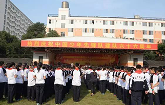 2015年10月12日下午16点10分,上海某某外语学校初一年级的少先队队员在操场上举行了第66个少先队纪念日活动。莅临本次活动的领导老师有副校长李俊,校长助理张黎明,学生处主